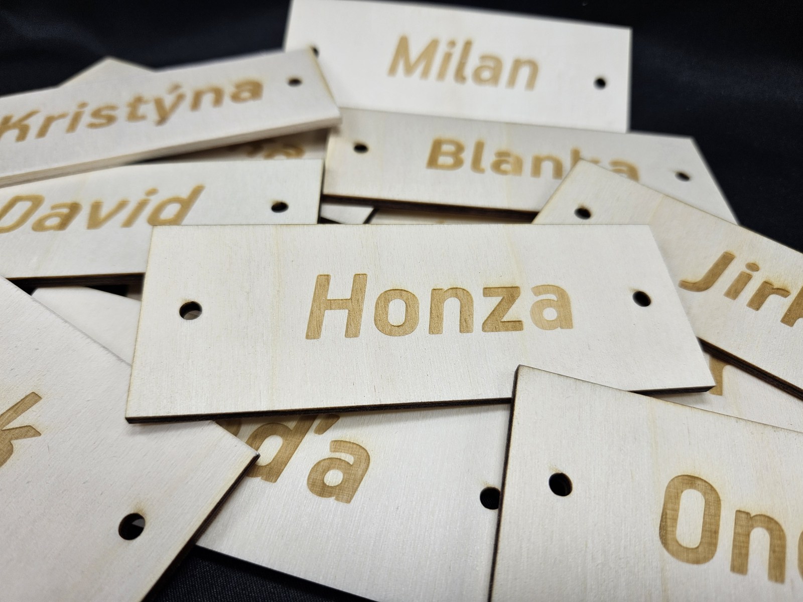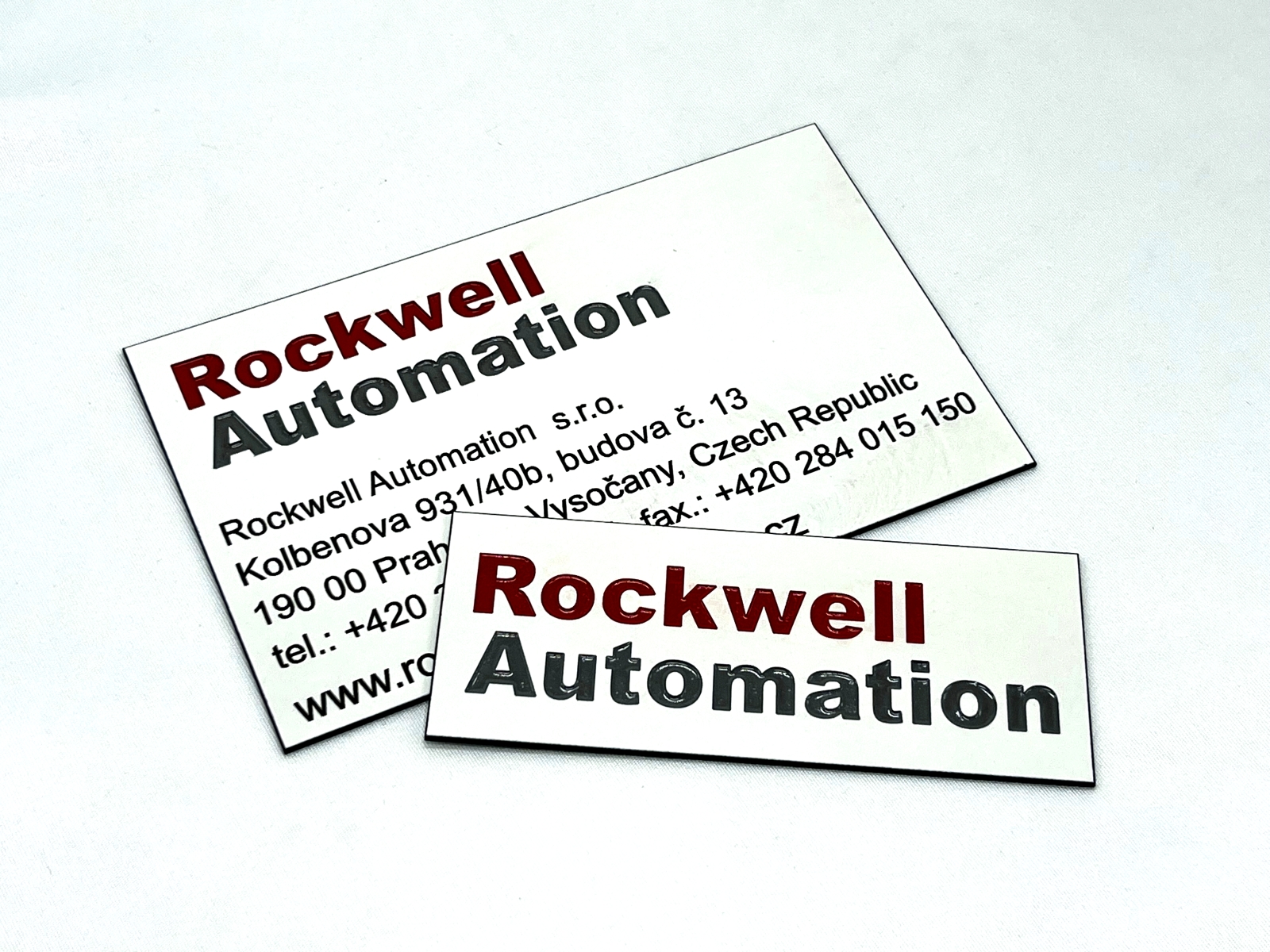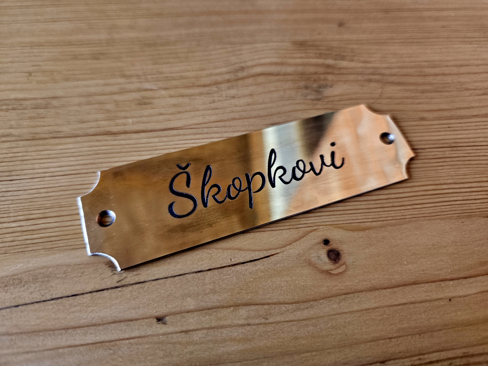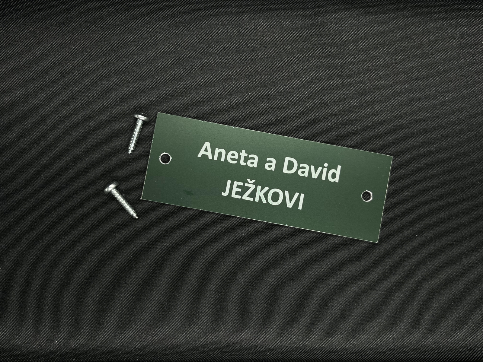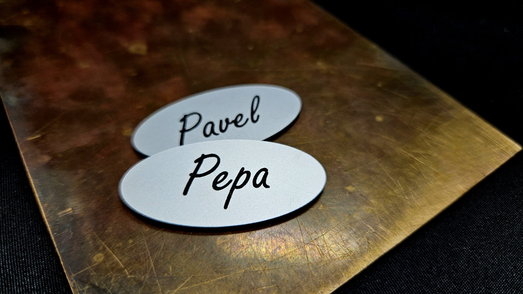 - Jmenovky a štítky na dveře / schránky – Jednoduché štítky pro označení dveří, schránek nebo zvonků. Vhodné pro domácnosti i provozovny, stejně jako personalizované jmenovky a pamětní štítky (např. na poháry, psí známky nebo urny).