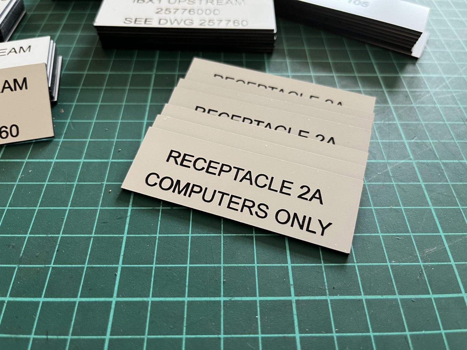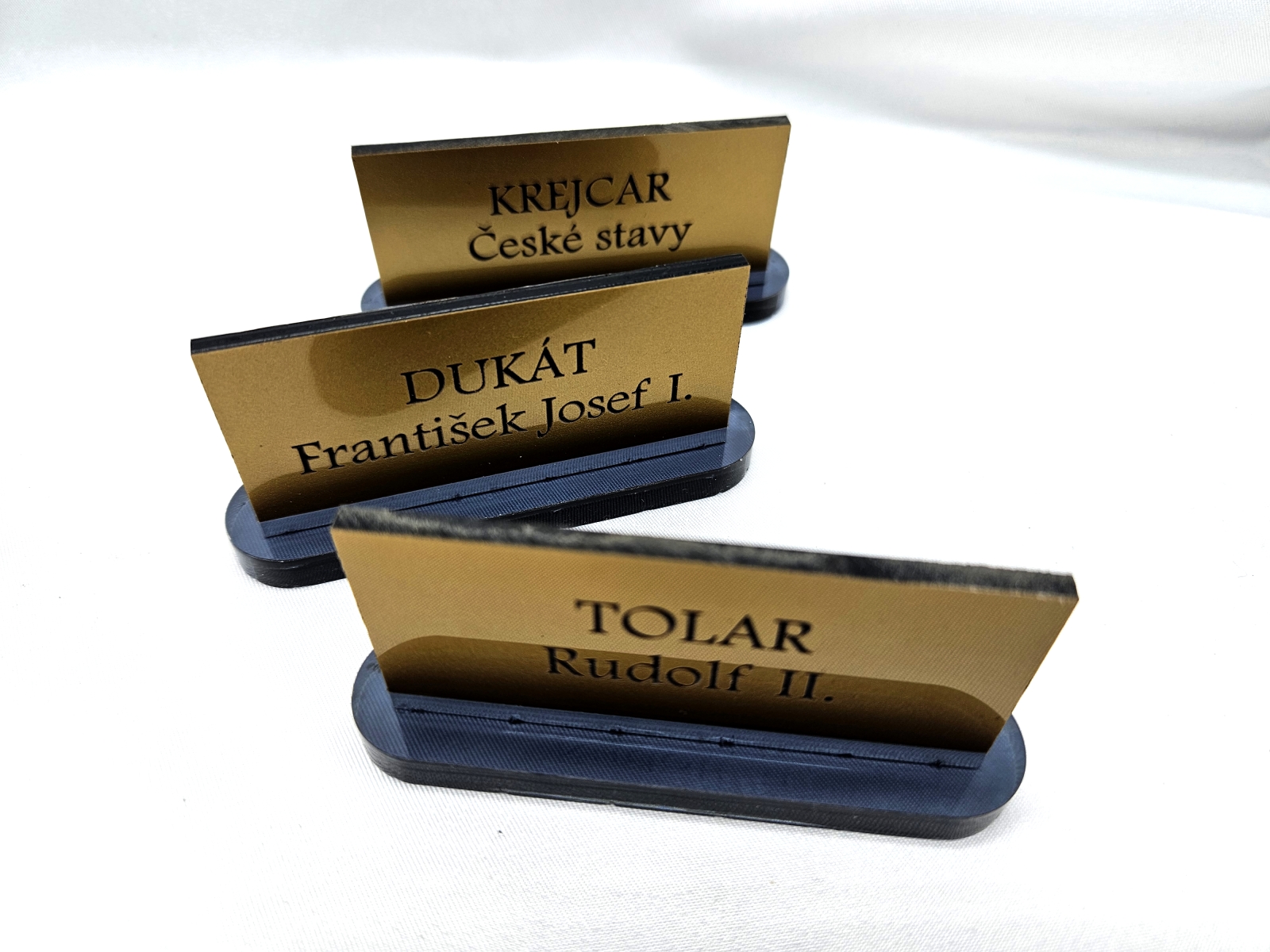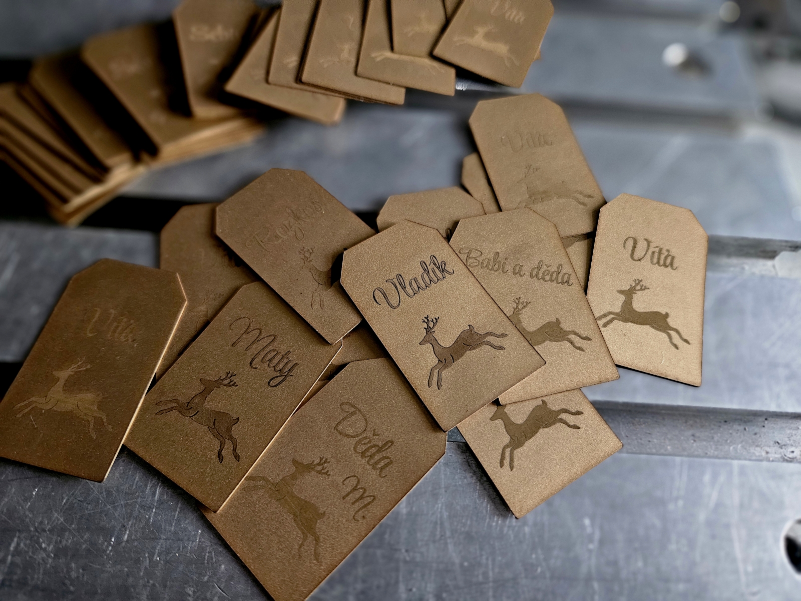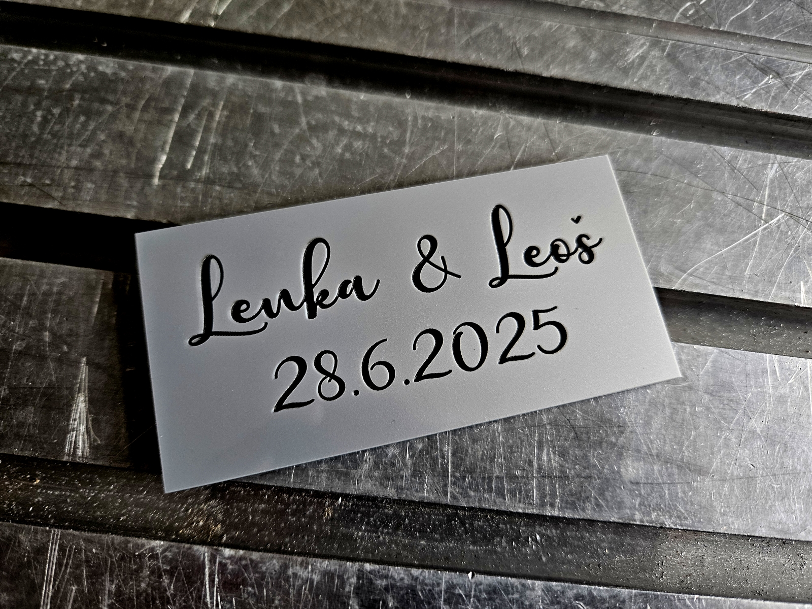- Jmenovky a štítky na dveře / schránky – Jednoduché štítky pro označení dveří, schránek nebo zvonků. Vhodné pro domácnosti i provozovny, stejně jako personalizované jmenovky a pamětní štítky (např. na poháry, psí známky nebo urny).