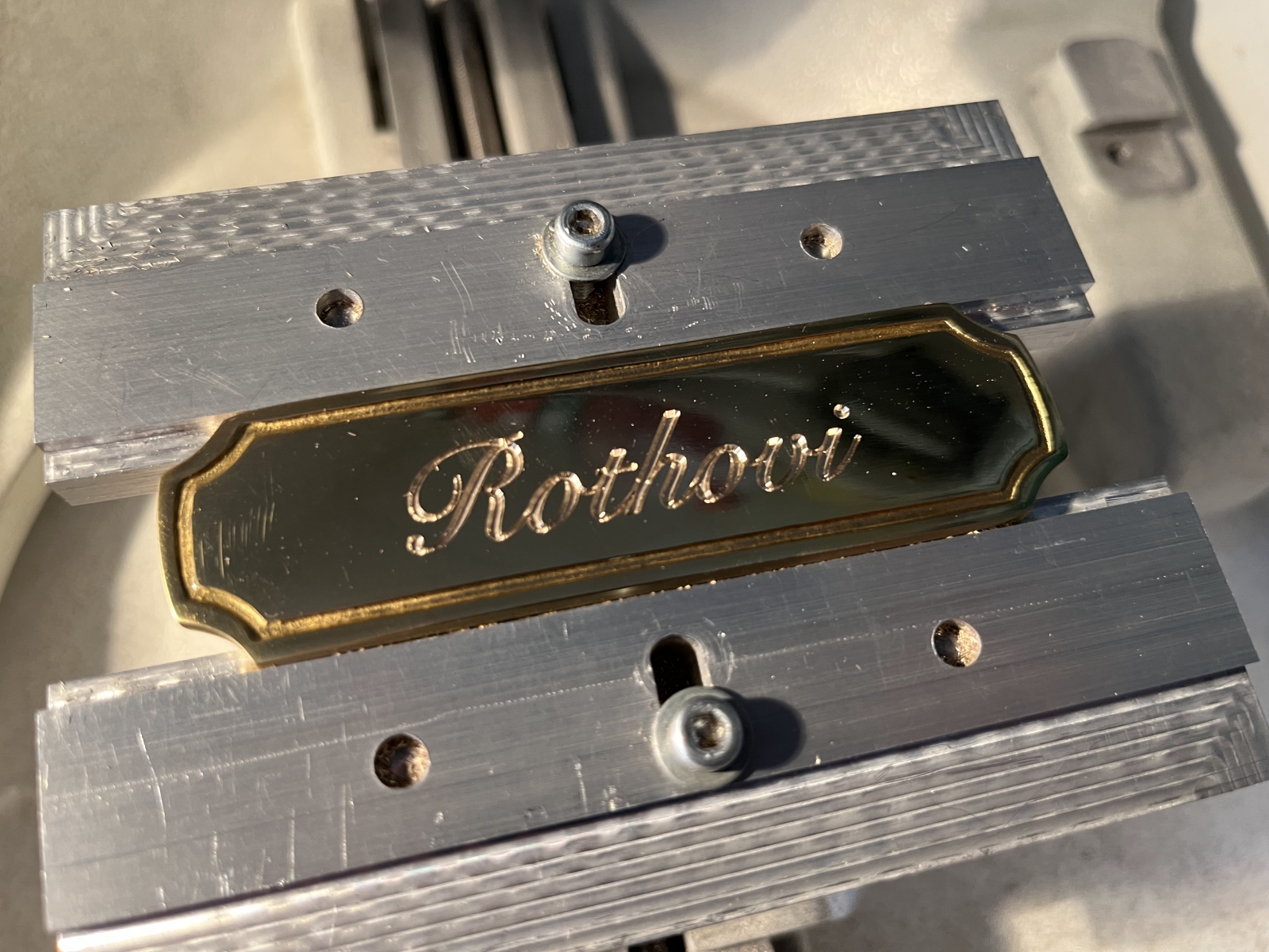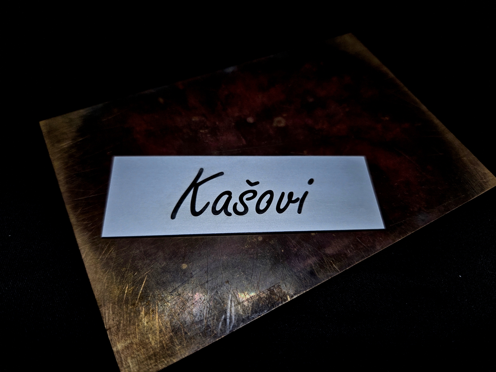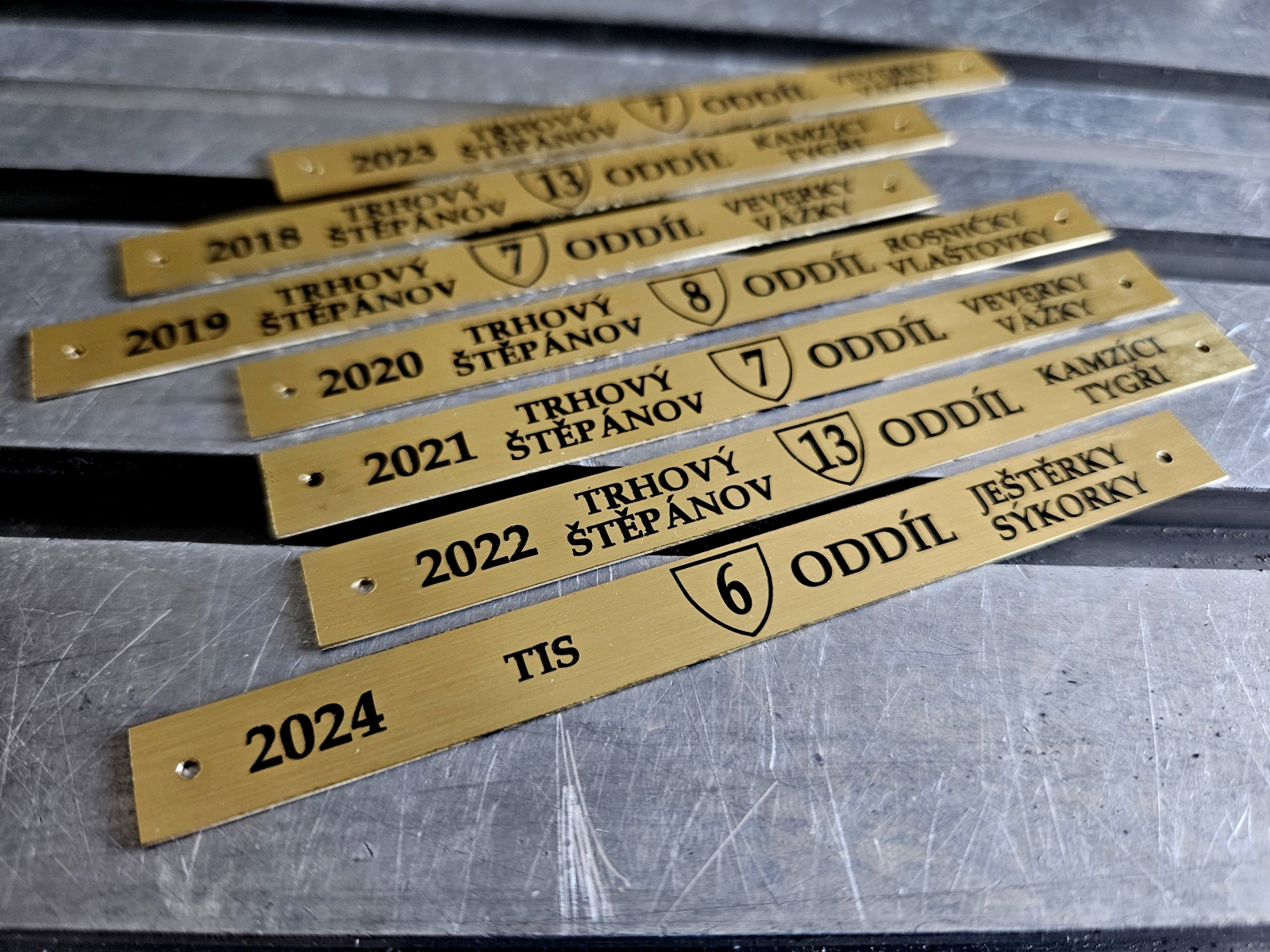 Gravírujeme do mosazi, eloxovaného hliníku (duralu), nerezu i dvouvrstvého plastu.
