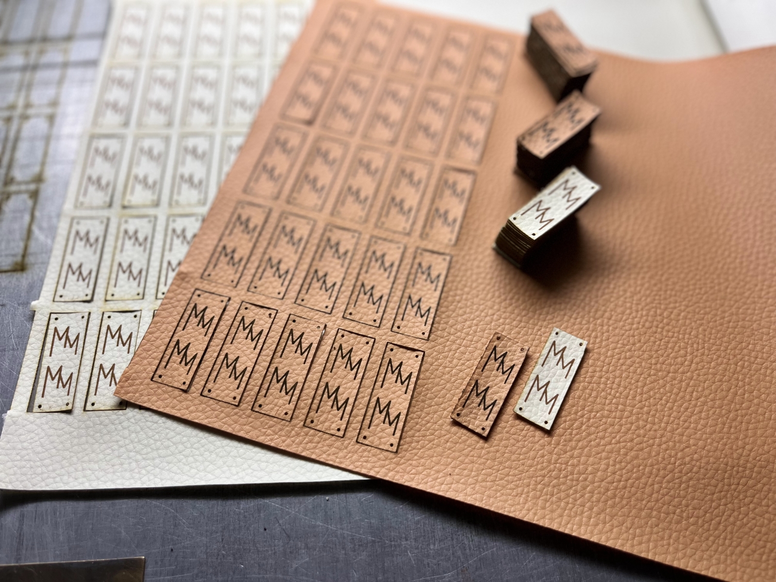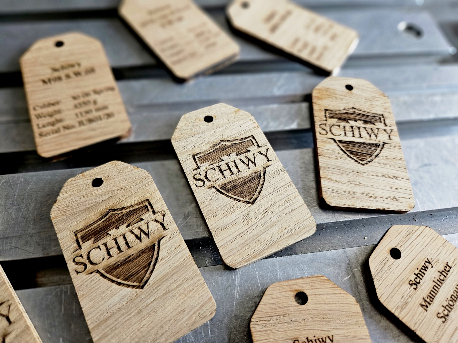 - Štítky na výrobky a produkty (logo, značka) – Malé štítky pro označení vlastních výrobků – ideální pro truhláře a výrobce.