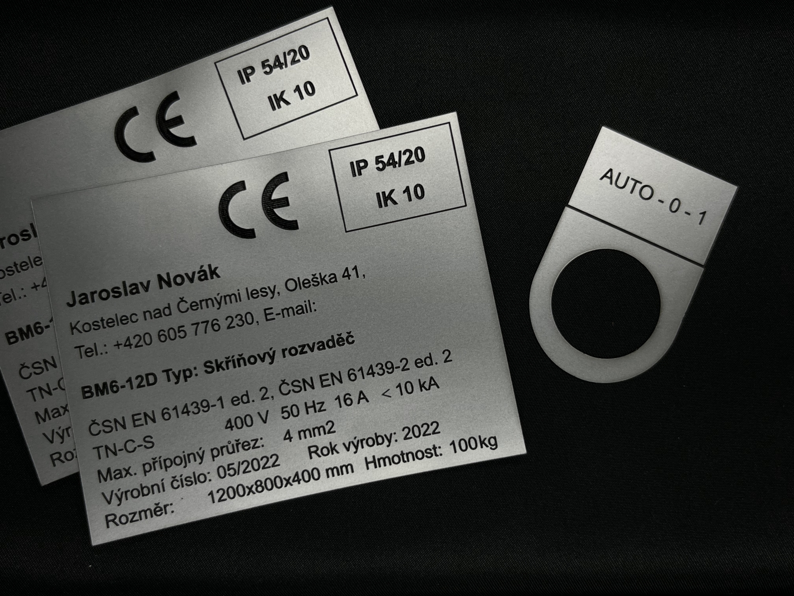 Vyrábíme gravírované štítky na výrobky a průmyslové značení na zakázku pro firmy, výrobu i technické provozy.